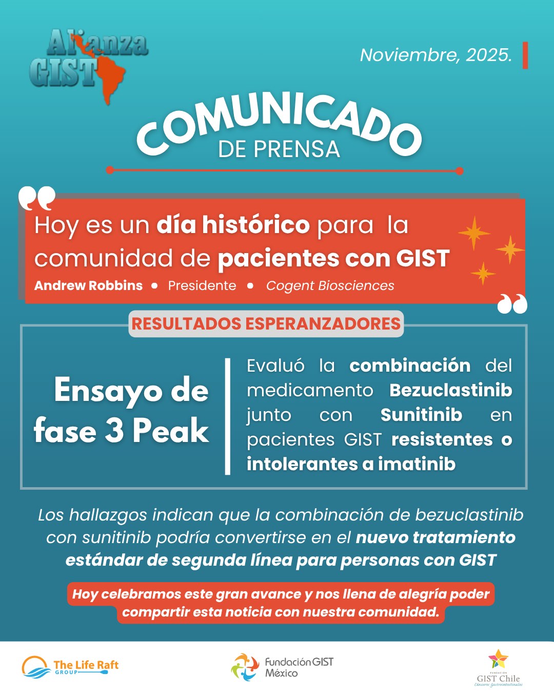 Este logro representa una nueva esperanza para las personas que viven con GIST, marcando un paso importante hacia la posibilidad de contar con un nuevo tratamiento estándar en segunda línea.